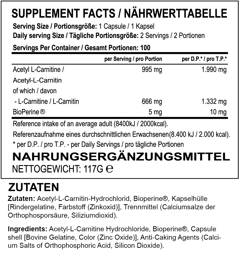 Wir haben uns entschieden, statt dem standardmäßigen L-Carnitin das hochwertige ALC, Acetyl-L-Carnitin, in unser Sortiment aufzunehmen.