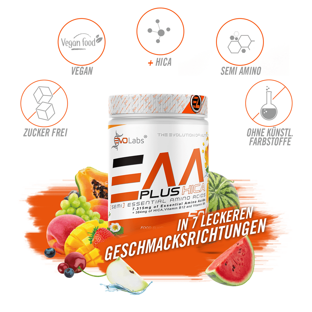 Wir von EVOLabs® können mit Stolz sagen, dass unsere EAA´s + HICA die geschmacklich ausgefeiltesten EAA´s sind, die du je genossen hast. Darüber hinaus ist es uns in langen Tests und Versuchsreihen gelungen, sie mit einer extrem guten Löslichkeit zu versehen. Unsere Stammkunden bestätigen uns das regelmäßig.