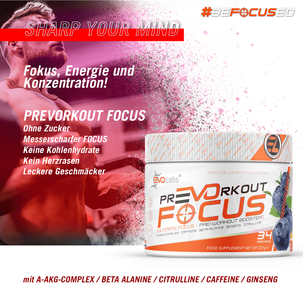 Volle Konzentration auf das Ziel und den Rest der Welt ausblenden! Das erzielt für uns ein perfekter Booster: Je nach Aktivität möchte man nicht immer einen maximalen Pump haben, aber trotzdem alle Vorteile eines Boosters nutzen. Genau zu diesem Zweck haben wir den prEVOrkout FOCUS konzipiert.